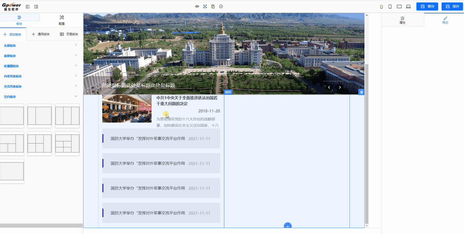 常用的样式一般分为:背景样式(背景色或者背景图)、内边距、外边距、布局方式(一行显示几列)、图片的比例、组件列的内边距、组件列的外边距、文章标题、文章摘要、文章日期、字体颜色(组件的整体颜色)、文本区域、字号(组件的整体字号);
