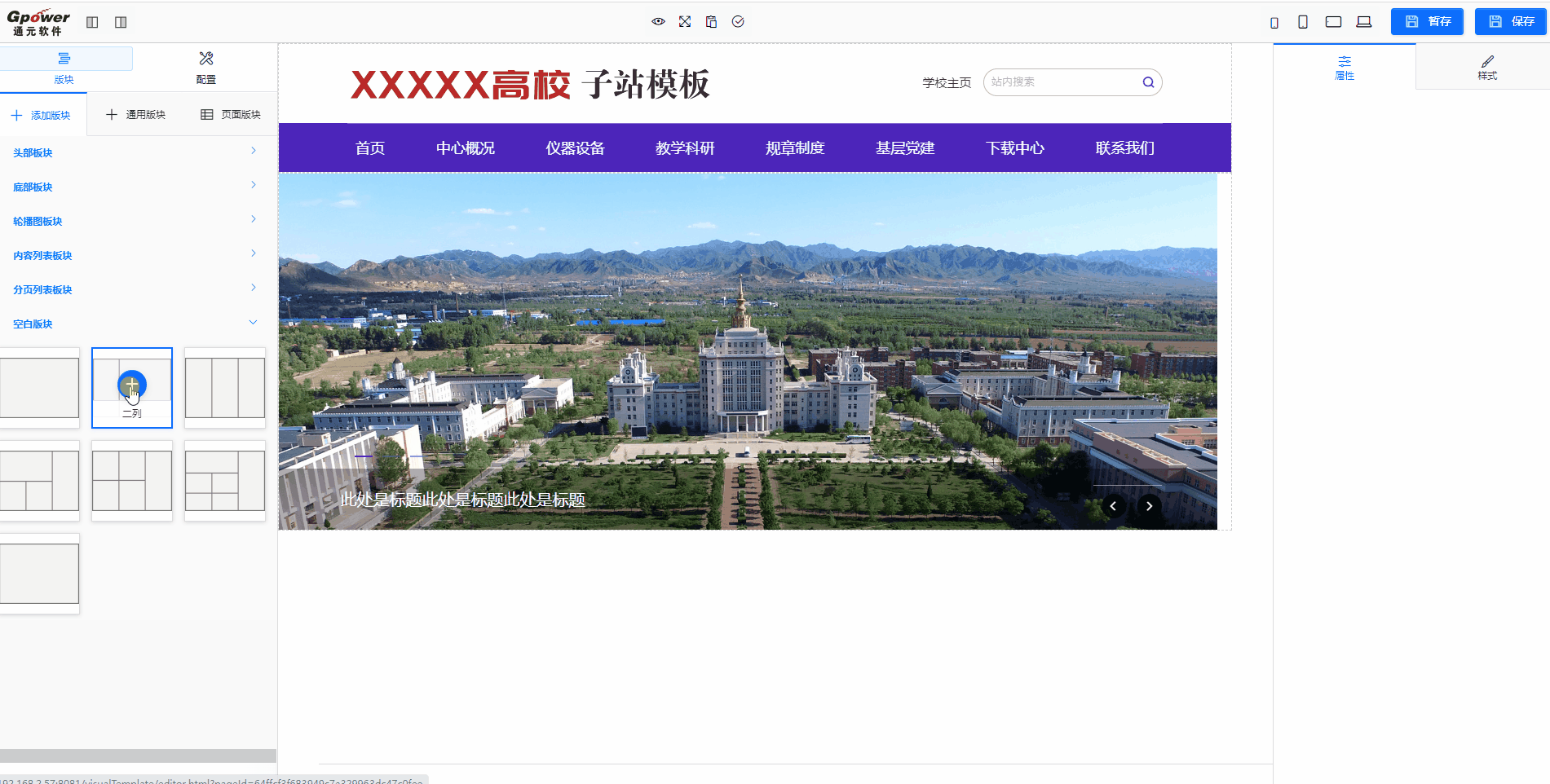 可以添加空白版块,再添加自由添加所需要的组件。