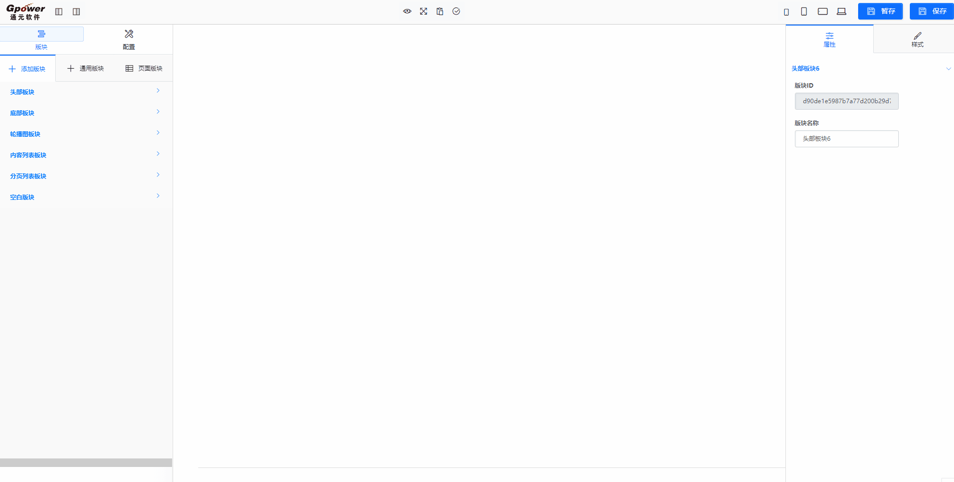 初始页面中无法直接添加组件,只能先添加版块,