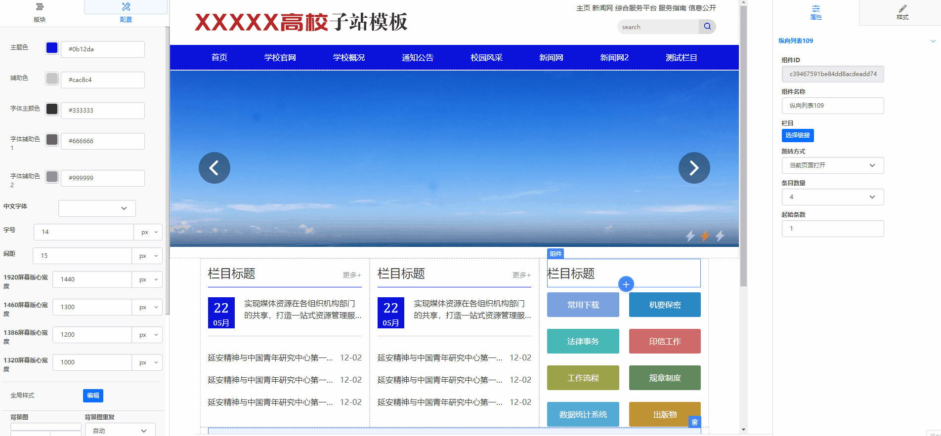 配置指的是在全局范围内控制的样式(站点为准),例如整个网站所用的主色调,当改为蓝色的时候,所有页面的主色调都为蓝色。具体包含样式功能如下: