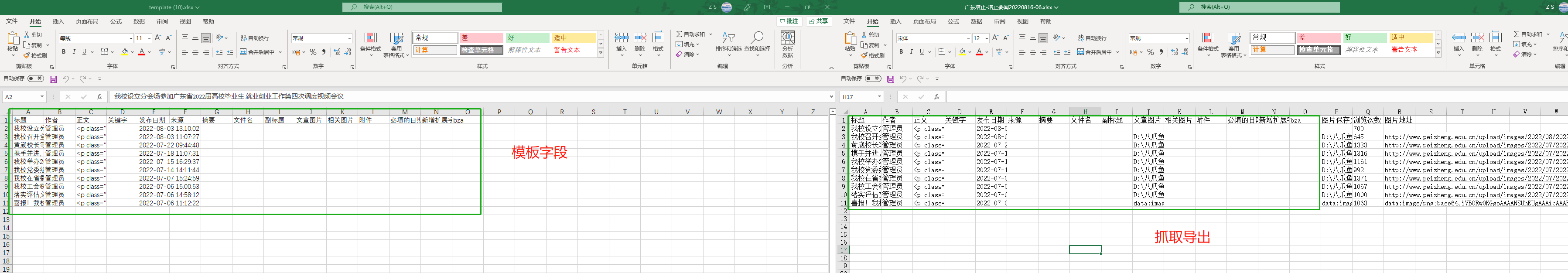 数据的读取和导入从第二行开始(忽略表头),完成后即可将抓取数据导入到目标GpowerCMS的指定栏目中。