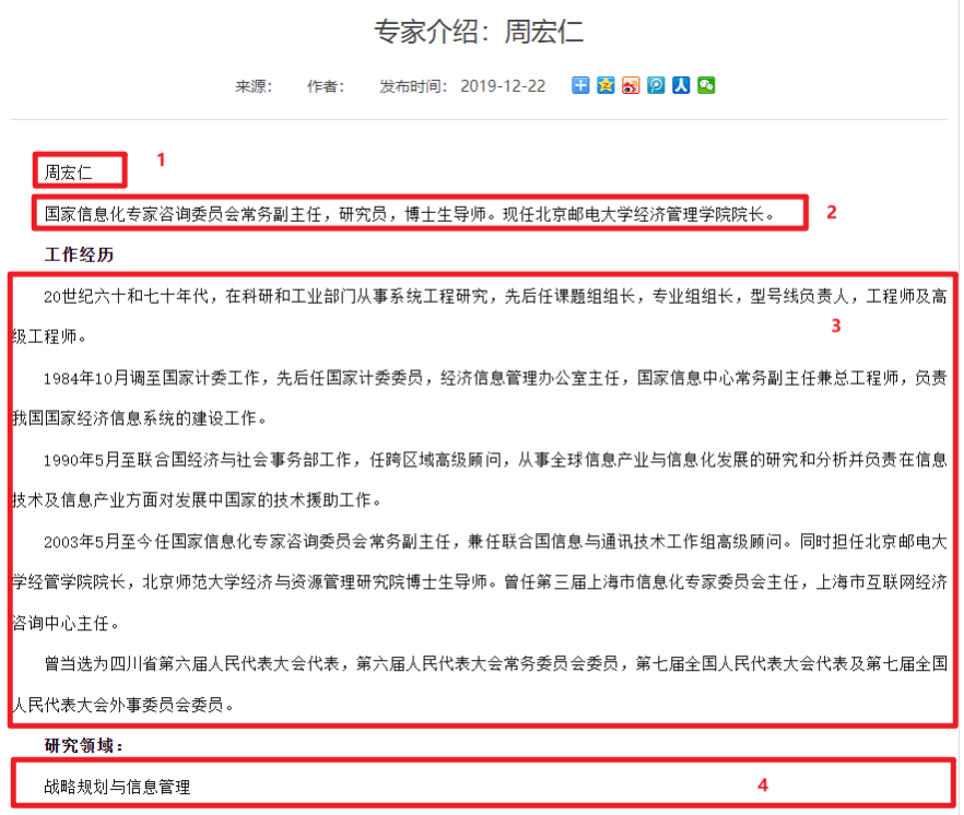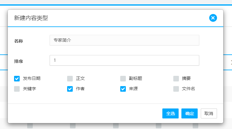 数据源数据结构除了文章数据既有的标题、来源、作者、发布时间等字段,参照上图标注内容中还存在【1-专家姓名】【2-专家任职】【3-工作经历】【4-研究领域】等4个特殊字段;要将改数据结构的内容导如到目标GpowerCMS中,需要在CMS中创建一个新的内容类型【专家主页】: