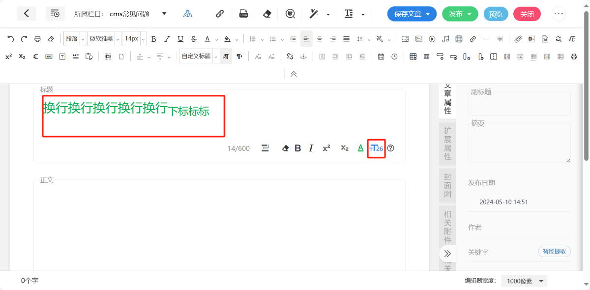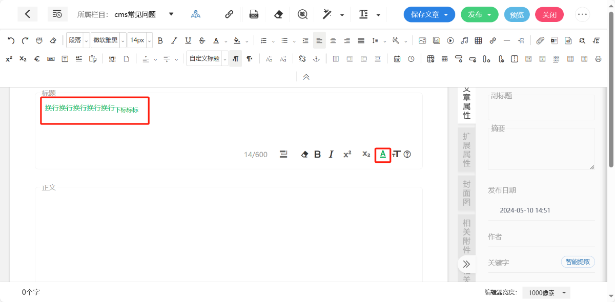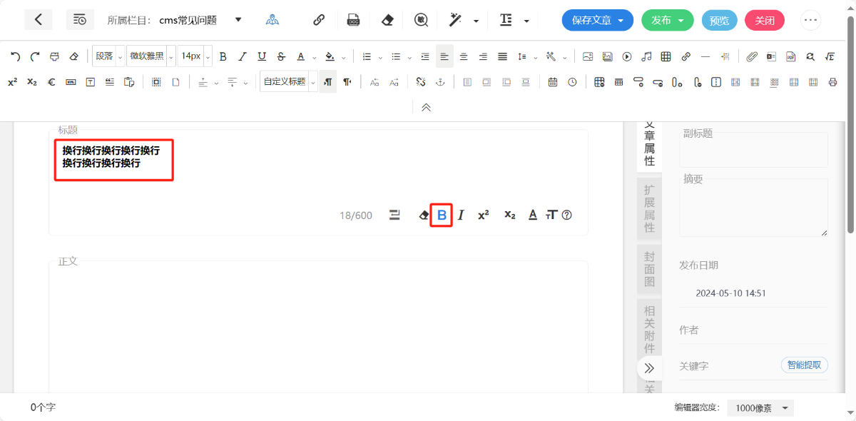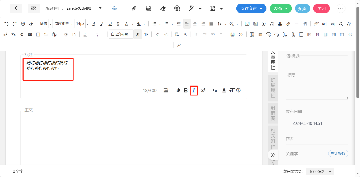 标题为必填项,支持对标题整体添加“换行”“加粗”“倾斜”“字体颜色”“字号”效果
