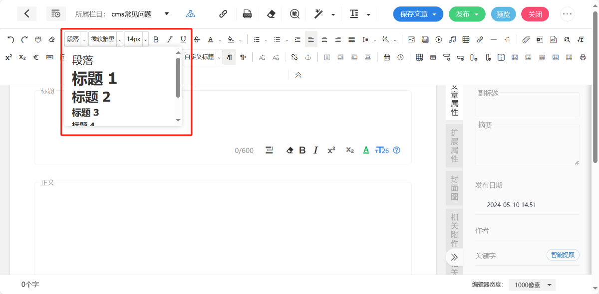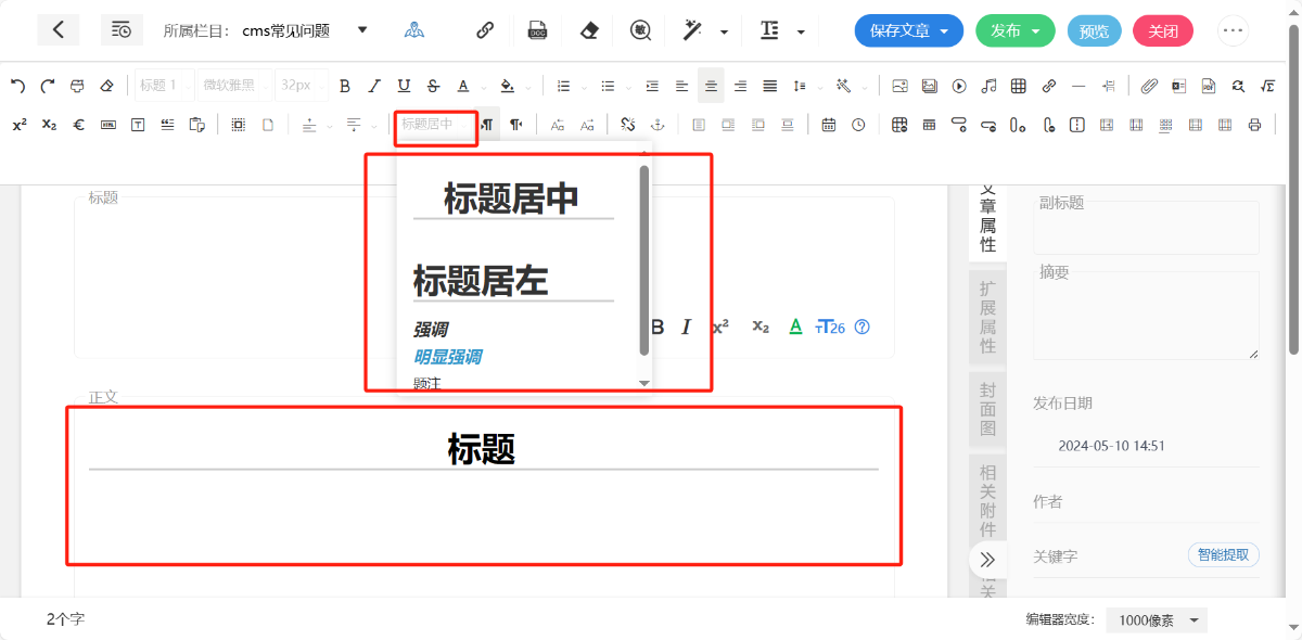 在正文部分生成标题,有简单的样式选择。