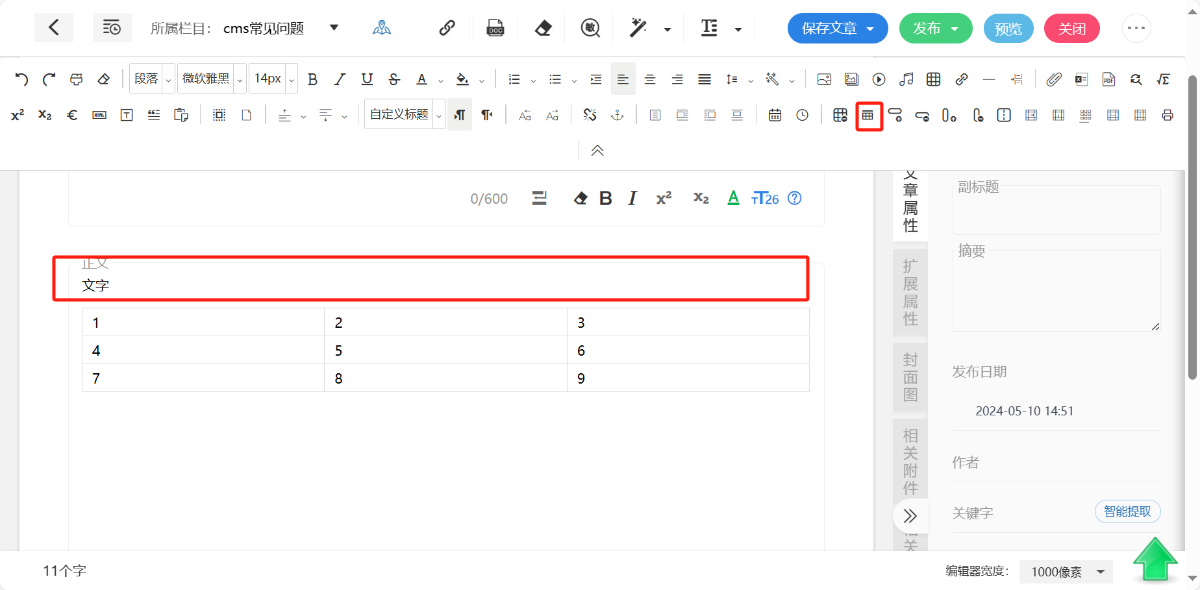 文章内容中可以插入EXCEL表格