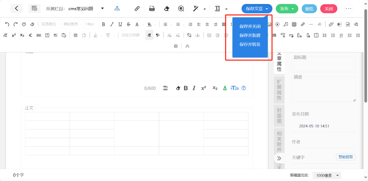 可将内容进行保存或直接发布;