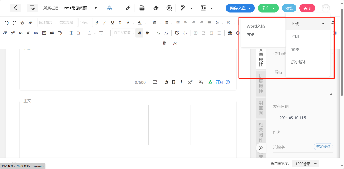 将本地word文件导入到文章编辑中。