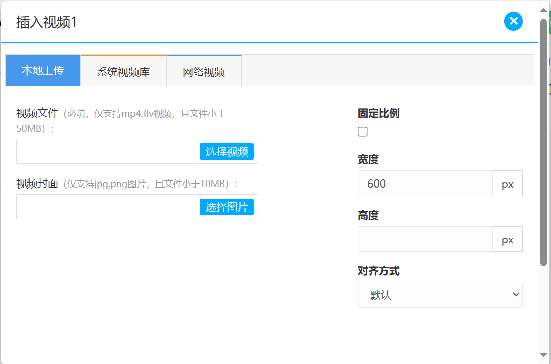 支持本地上传、系统视频库调取、网络视频链接,可调整视频尺寸
