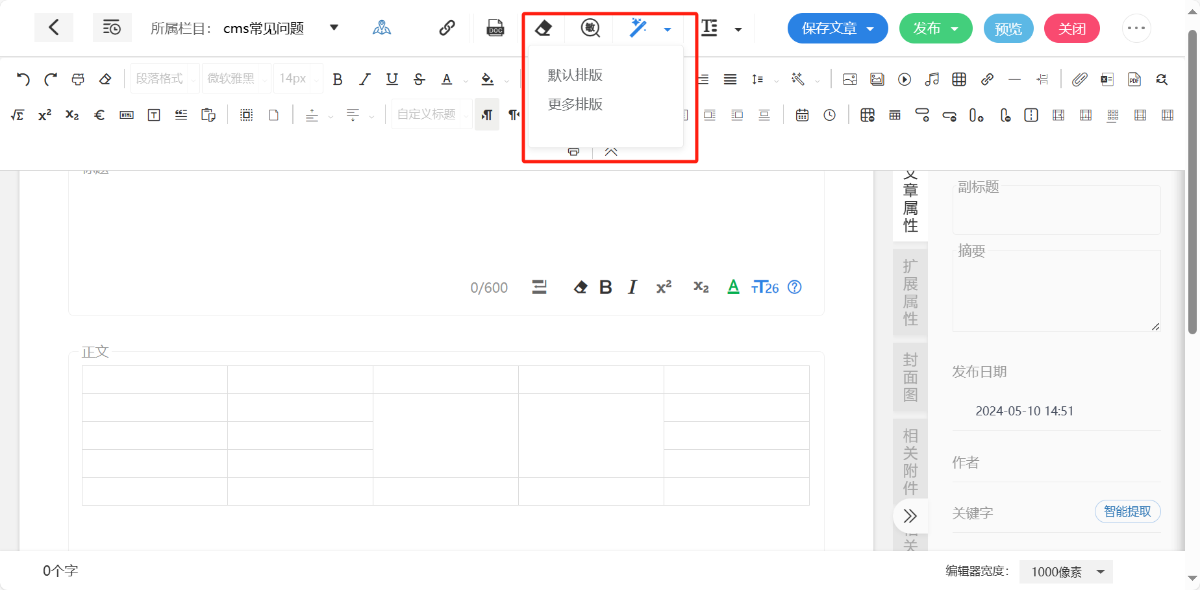 可以给编辑器中的内容进行排版,可以选择默认排版,也可以自定义模板进行选择;