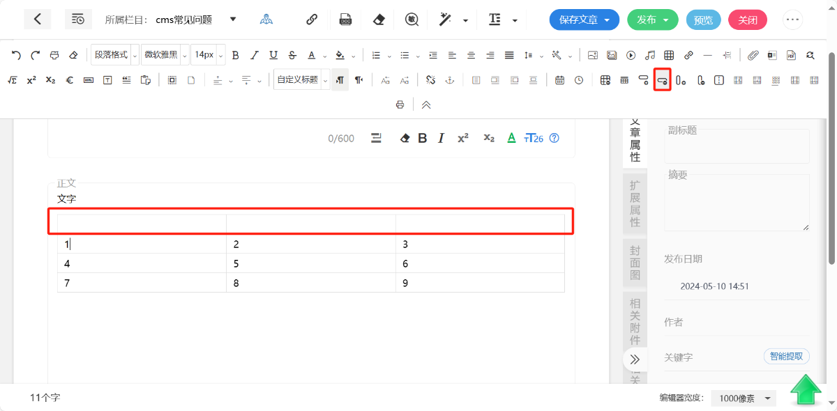 工具栏中功能的效果对正文内容生效,工具栏默认收起,点击“