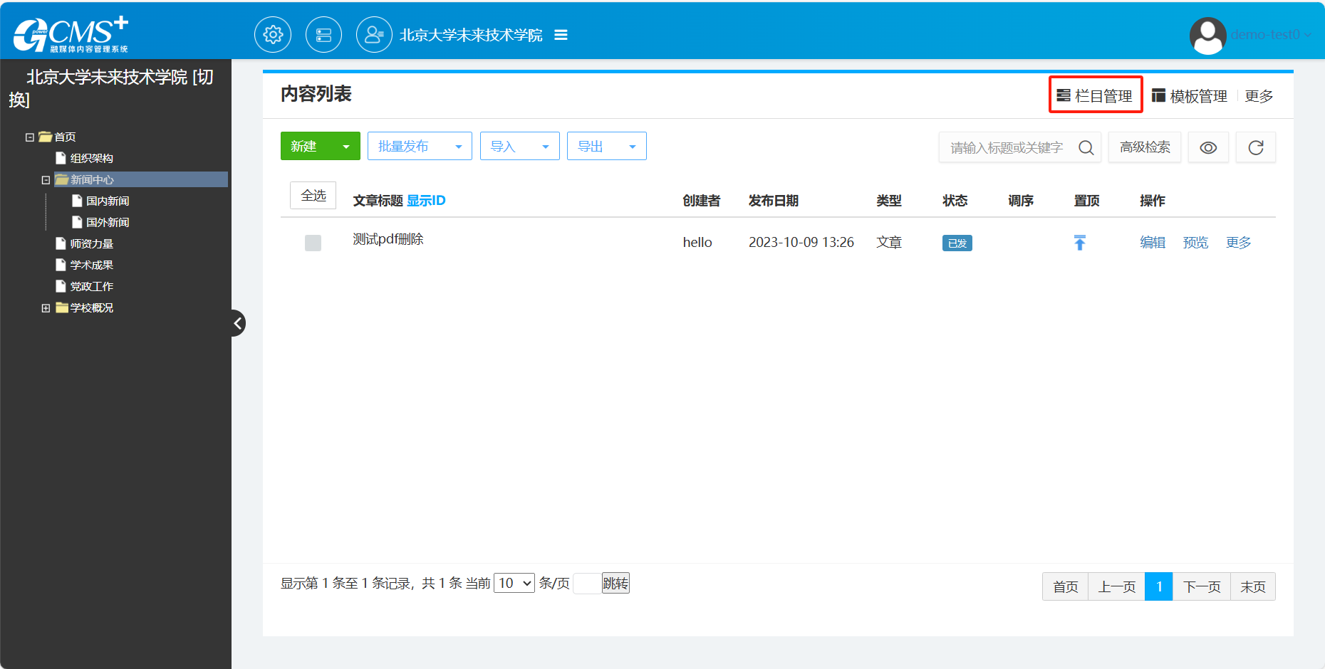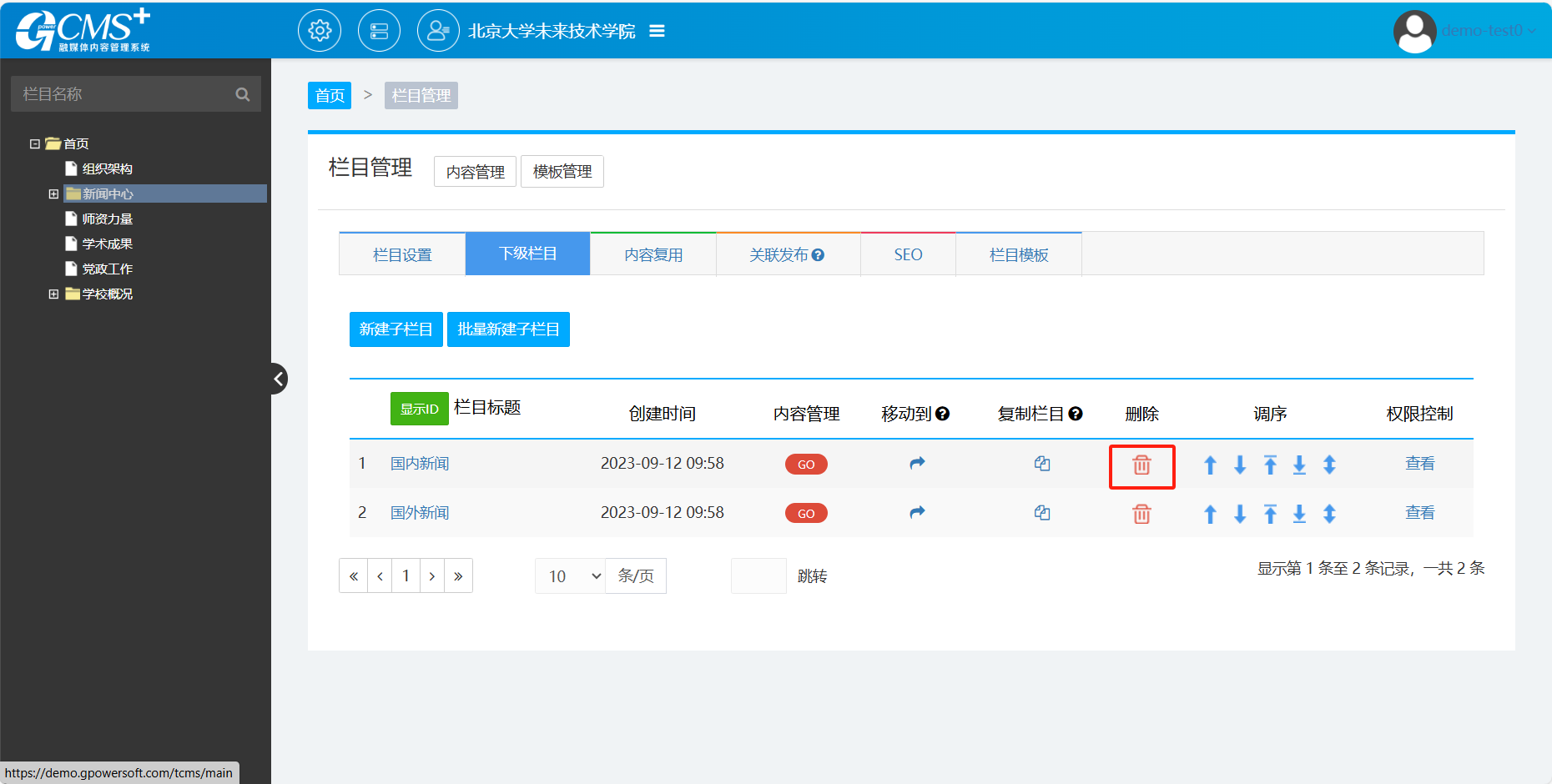 【CMS9】如何删除栏目