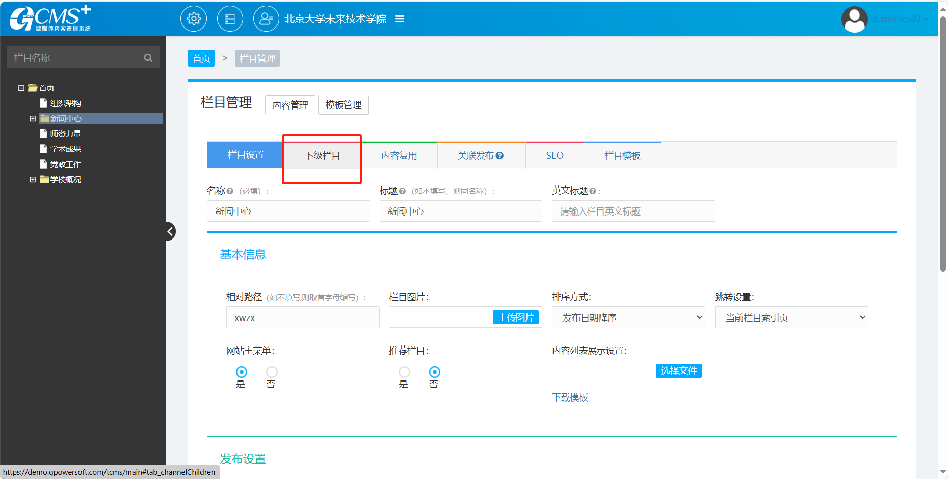3.点击下级栏目