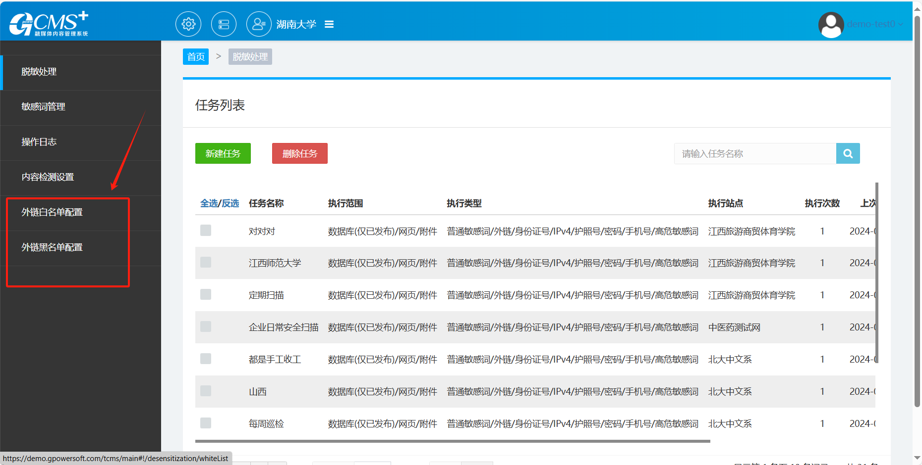 在系统首页选择“脱敏处理”入口,进入脱敏处理界面;